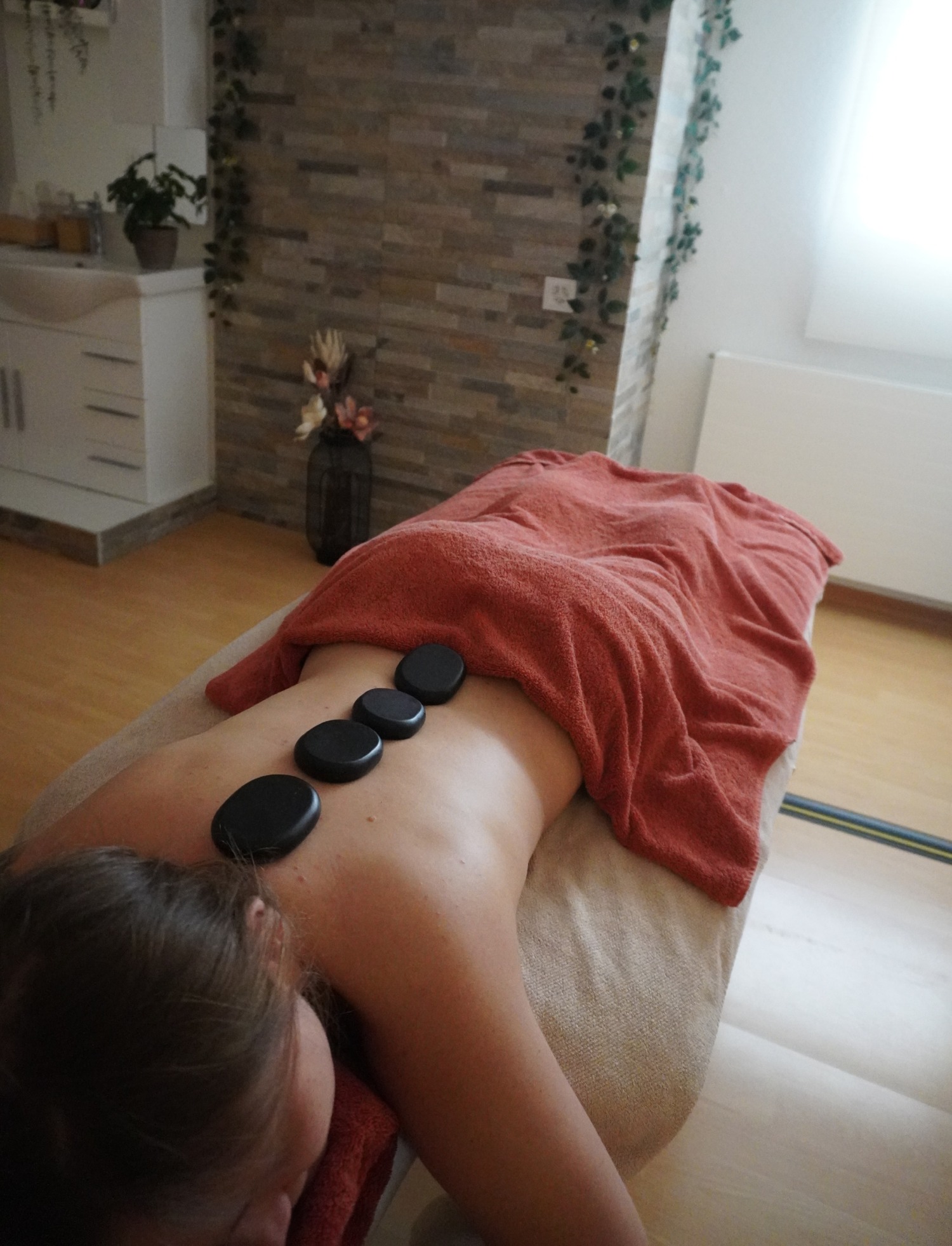 Die Hot Stone Massage ist eine entspannende klassische Ganzkörpermassage in kombination mit heissen Lava Steinen. Durch die Wärme der Natursteinen verfallen Sie der ultimativen Tiefenentspannung und regen somit auch die Durchblutung an. Schon nach kurzer Zeit fühlen Sie sich wie auf Wolke 7 und sichern sich eine ausergewöhnliches Gefühl von Loslassen deiner ganzen Materie.